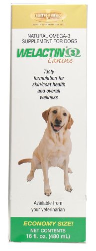 Welactin Canine is a rich source of omega-3 fatty acids derived from salmon and other cold water fish. Welactin Canine provides high levels of omega-3 fatty acids to help support skin/coat health and overall wellness of your dog.Omega-3 fatty acids have beneficial effects by helping in the following areas: Skin/Coat Health: support healthy skin/coat Heart Health: support normal heart rhythm Kidney Health: support renal function Brain/Vision: support the nervous system and trainability Musculoskeletal: support joint function Immune System Health: support immune function In a palatability study, Dogs preferred their regular food with Welactin.Ingredients: Salmon oil, fish oil, mixed tocopherols, mono-and diglycerides, soybean oil, citric acid, and rosemary extract.
