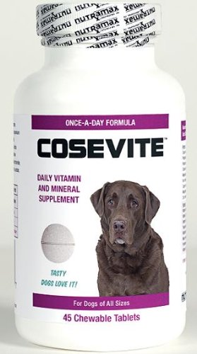 Cosevite Chewable Tablets are a tasty, once-a-day multivitamin supplement for dogs of all sizes. Highly palatable vitamin and mineral supplement that helps provide nutrition in addition to normal diet.