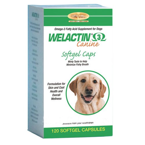 Welactin For Dogs Softgel (120 Caps): formulated to deliver substantial levels of omega-3 fatty acids for healthy skin and coat and to help support the overall wellness of your dog. Administration:Give one soft gel capsule per 20 pounds of your dog's body weight daily or as directed by your veterinarian. The softgel capsules may be adminstered by hand as a treat. If your dog refuses them at first, adminster them with your dog's food as some dogs need to get used to the texture of the gelatin capsule. The softgel capsules can also be punctured and the oil applied directly onto the dog's food. Omega-3 Fatty acids have beneficial effects by helping: Skin/Coat Health Heart Health Kidney Health Brain/Vision Musculoskeletal Immune System Health