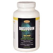 Dasuquin with MSM is a new breed of joint health supplement in a tasty chewable tablet for dogs that goes beyond standard glucosamine supplements. It contains avocado/soybean unsaponifiables, or ASU, fortified with green tea, combined with glucosamine hydrochloride, MSM and low molecular weight chondroitin sulfate. It is the most complete joint support supplement available.