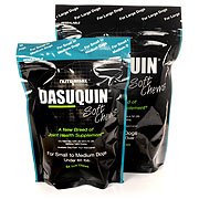 Dasuquin Soft Chews for Dogs is, as the package says, 'A new breed of Joint Health Supplement.' The chews are clinically researched supplements that promote joint health to ease the symptoms of osteoarthritis in dogs. Tasty enough to be given as a treat, the chews' main ingredients are high-quality avocado/soybean unsaponifiables (ASU), decaffeinated tea, glucosamine hydrochloride, and low molecular weight chondroitin sulfate. Dosage varies depending on the size of your pet. It starts at a high level and falls to a maintenance level after four to six weeks of treatment. Pet owners who have given this product to their dogs often report marked reduction in pain and improved mobility. Pet owners also appreciate that their dogs enjoy the taste of the supplement, so there is no hassle in giving it daily. Dasuquin Soft Chews for Dogs is the number one joint-health brand recommended by veterinarians.