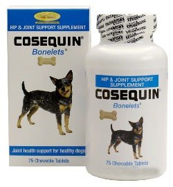 This is a joint support supplement for healthy dogs to help keep them active. If you notice your pet slowing down when climbing stairs or rising from a down position, we recommend Cosequin DS, the most advanced protection and the original researched formula. Each tablet contains Glucosamine HCL and MSM. Basic joint support for healthy dogs. Tasty liver-flavored treat. Directions: Cosequin Bonelets can be given all at once or divided throughout the day. Cosequin Bonelets can be administered as a treat or crumbled in your pet's food. Number of bonelets can be increased at any time depending on your pet's needs. 15 lbs and under - 1/2 chewable tablet daily, 16-30 lbs - 1 chewable tablet daily, 31-60 lbs - 2 chewable tablets daily, 61-100 lbs - 3 chewable tablets daily.