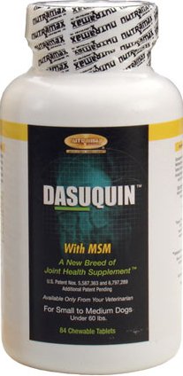 Dasuquin with MSM is a new breed of joint health supplement in a tasty chewable tablet for dogs that goes beyond standard glucosamine supplements. It contains avocado/soybean unsaponifiables, or ASU, fortified with green tea, combined with glucosamine hydrochloride, MSM and low molecular weight chondroitin sulfate. It is the most complete joint support supplement available. Dasuquin with MSM is a non-prescription (OTC) product available as flavored, chewable tablets.