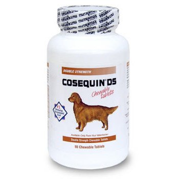 Cosequin DS Chewable Tablets 90ct Nutramax Cosequin Chewable beef and cheddar flavored tablets provide the raw materials (nutrients) the body uses to replenish the major components of articular cartilage matrix. Natural and safe, cosequin was developed for long term use. Double strength for large dogs. Ingredients: glucosamine hcl, sodium chondroitin sulfate, microcrystalline cellulose, dextrose, xanthan gum, vegetable oil, artificial roast beef flavor, manganese ascorbate, salt, natural and artificial cheese flavor, mixed glycosaminoglycans, dried brewers yeast and natural garlic flavor. Guaranteed Analysis - each tablet contains: glucosamine hcl 99% - 500 mg sodium chondroitin sulfate 95% (low molecular weight) - 400 mg ascorbate (as manganese ascorbate) - 33 mg manganese (as manganese ascorbate) - 5 mg Administration as a supplement for dogs: The recommended initial administration period is four to six weeks. Your dog may respond in a shorter period of time. At this time you can decrease the number of Cosequin DS chewable tablets to the maintenance level. You can feed the chewable tablets directly to your pet or crumble and mix with food. Initial 4 to 6 week administration period: 10 to 24 lbs - 1 tablet daily (1/2 in the morning & 1/2 in the evening) (under 10 lbs, 1/2 daily); 25 to 49 lbs - 2 tablets daily (1 in the morning & 1 in the evening); 50 to 100 lbs - 3 tablets daily (2 in the morning & 1 in the evening); over 100 lbs - 4 tablets daily (2 in the morning & 2 in the evening). Maintenance level: 10 to 24 lbs - 1/2 tablet daily; 25 to 49 lbs - 1 tablet daily; 50 to 100 lbs - 1-2 tablets daily; over 100 lbs - 2 tablets daily. Once consistent improvement has been seen, these maintenance levels may be reduced to an every other day administration. The maintenance level can also be used long term on normal dogs to help keep their joints healthy. This product as been discontinued. We recommend Cosequin Soft Chew Dogs